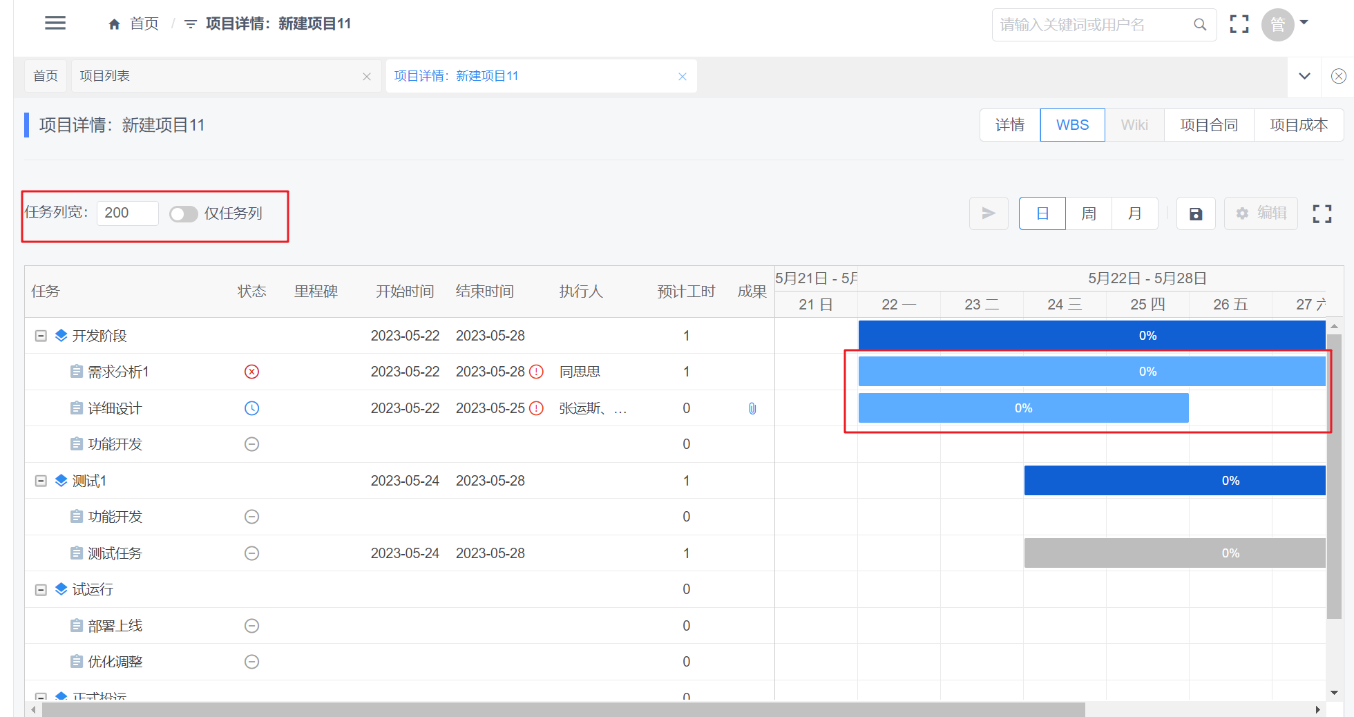 - 项目WBS页签操作优化
