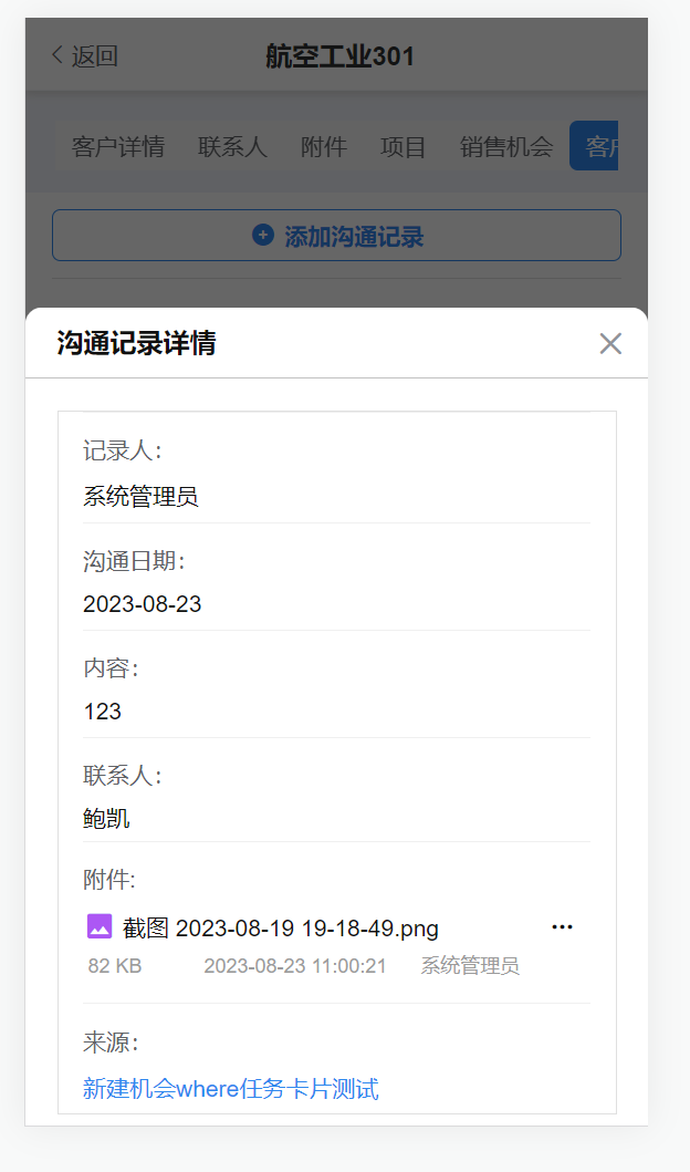 - 客户详情,联系人详情,机会详情页的客户沟通视图增加弹层