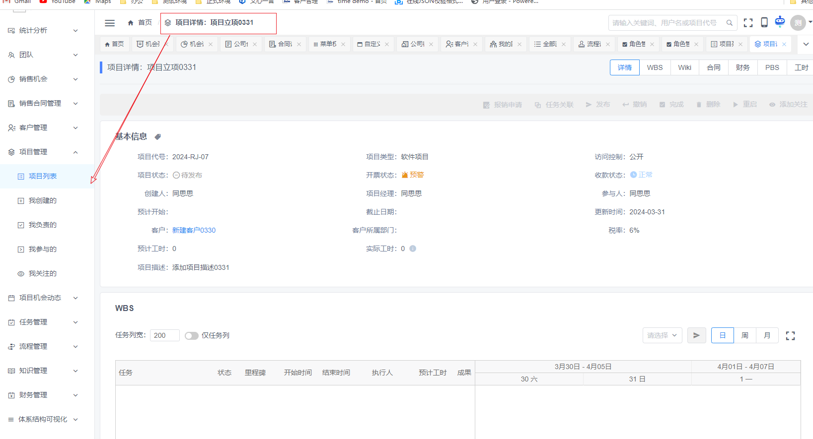 - 项目中的成支出统计列表,去掉售前成本售前成本(系统)和售前成本(实际)列,售前成本合计列自动带入关联销售机会的对应字段值