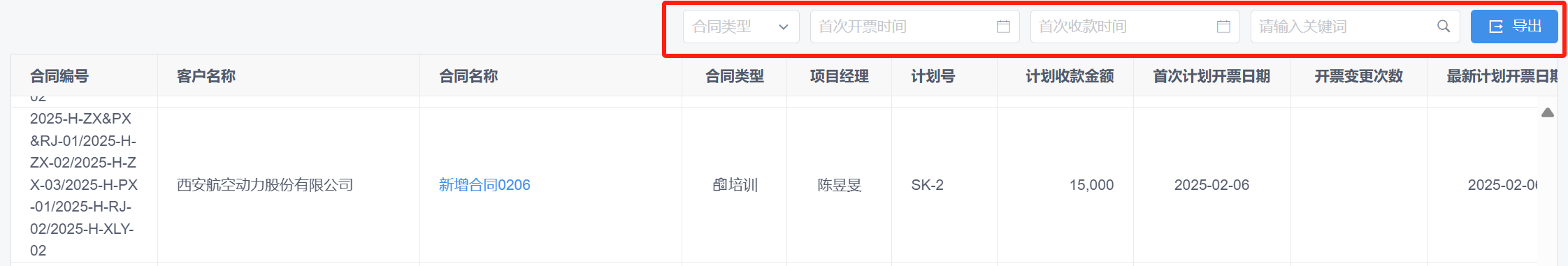 - 销售合同管理新增开票收款计划统计表