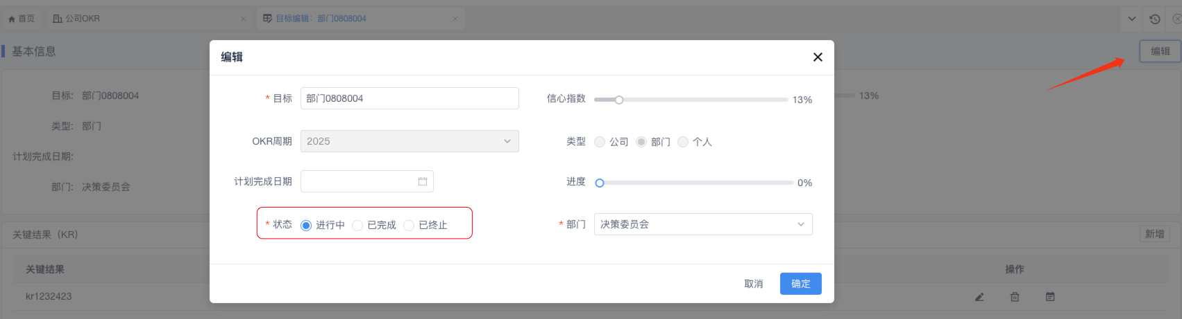 9.OKR管理-O的“是否完成”更改为“当前状态”
