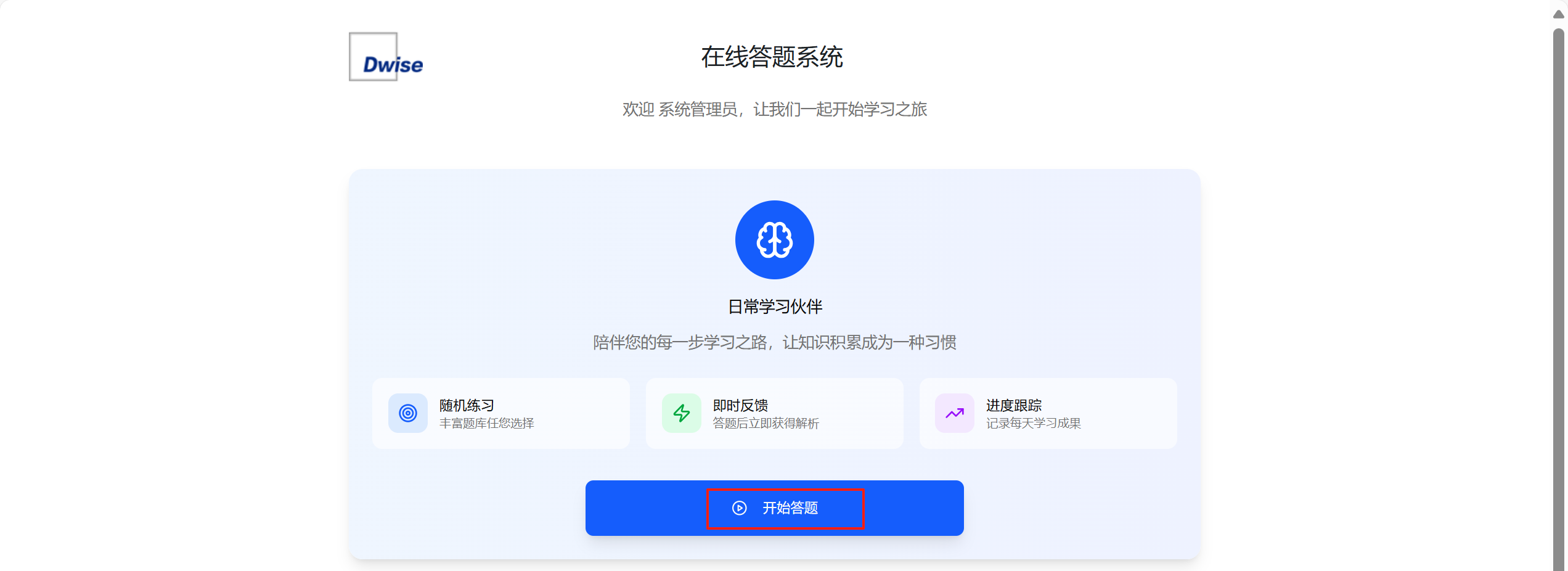 - 进入答题系统界面后,点击 开始答题 按钮。
