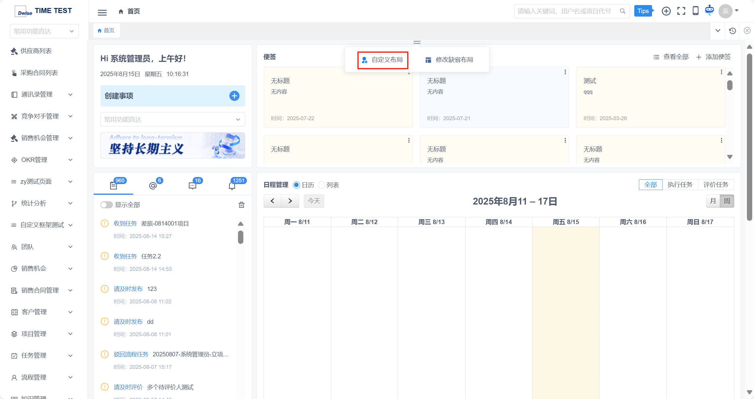 在首页点击 修改布局 按钮,选择 自定义布局。