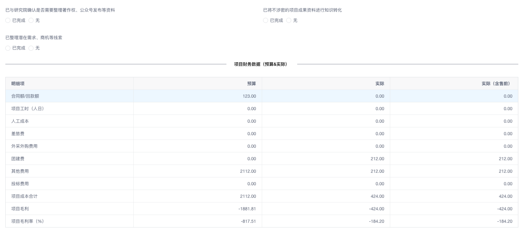 当有审批通过的结项申请流程后,才可以点击“完成”按钮,否则无法点击