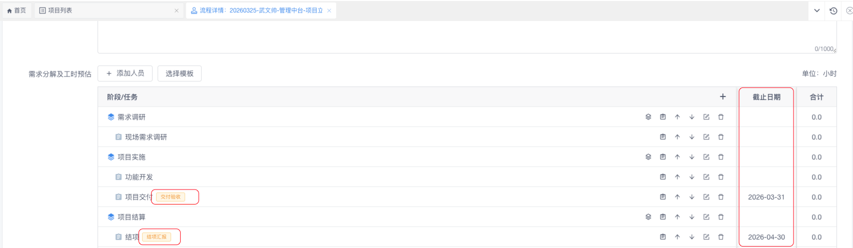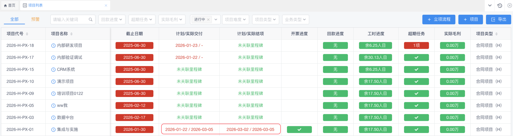 1.项目列表的交付日期/结项日期优化