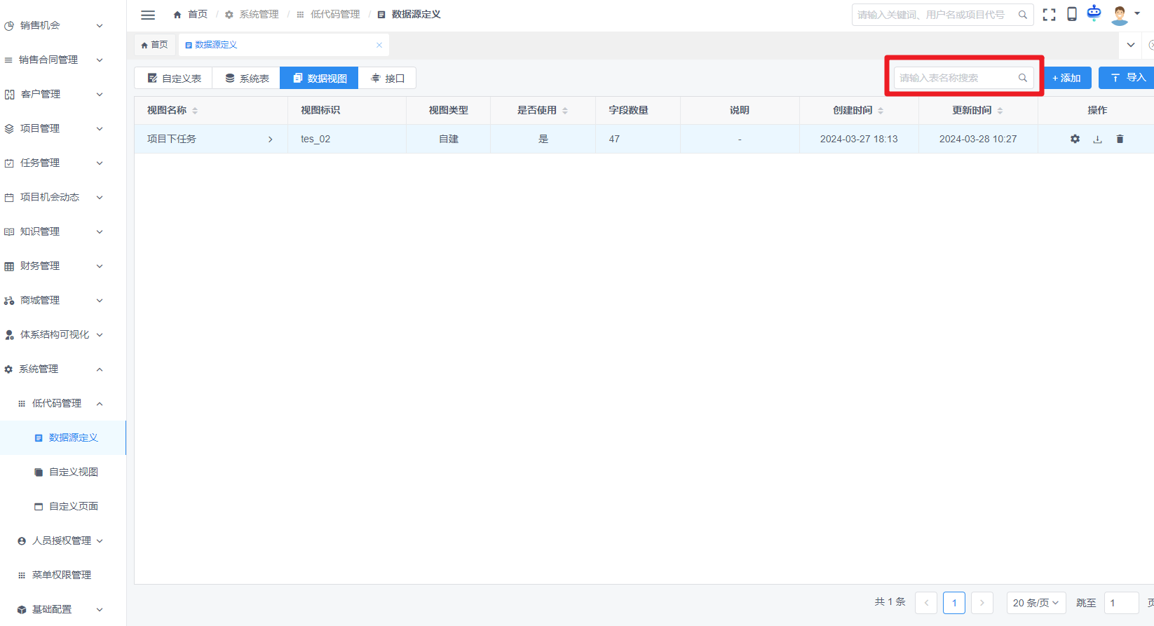在新版SAAS系统中,有四种数来源:自定义表,系统表,数据视图,接口。该功能实现用户在后台配置自定义表、添加系统内置系统表、添加数据视图、添加接口可用于自定义视图引用。